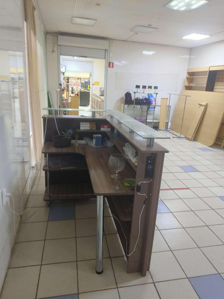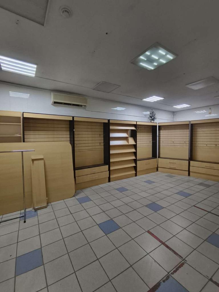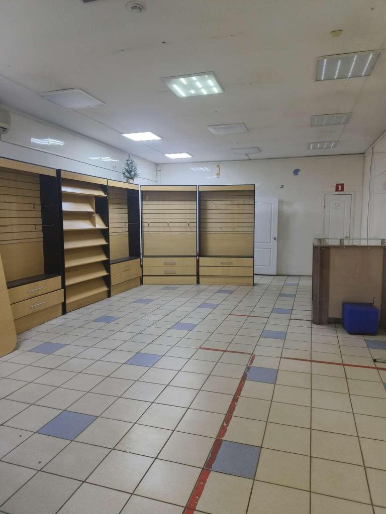 В помещении уже есть стеллажи. В этом помещении можно рассмотреть разные направления торговли:к примеру одежда, детская одежда, парфюмерия, бижутерия, сумки и чемоданы .