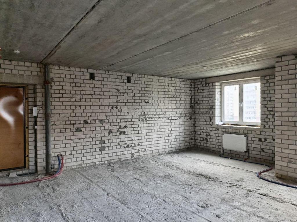 Квартира без отделки, с установкой металлической двери, пластиковых окон, радиаторов отопления, приборов учета.