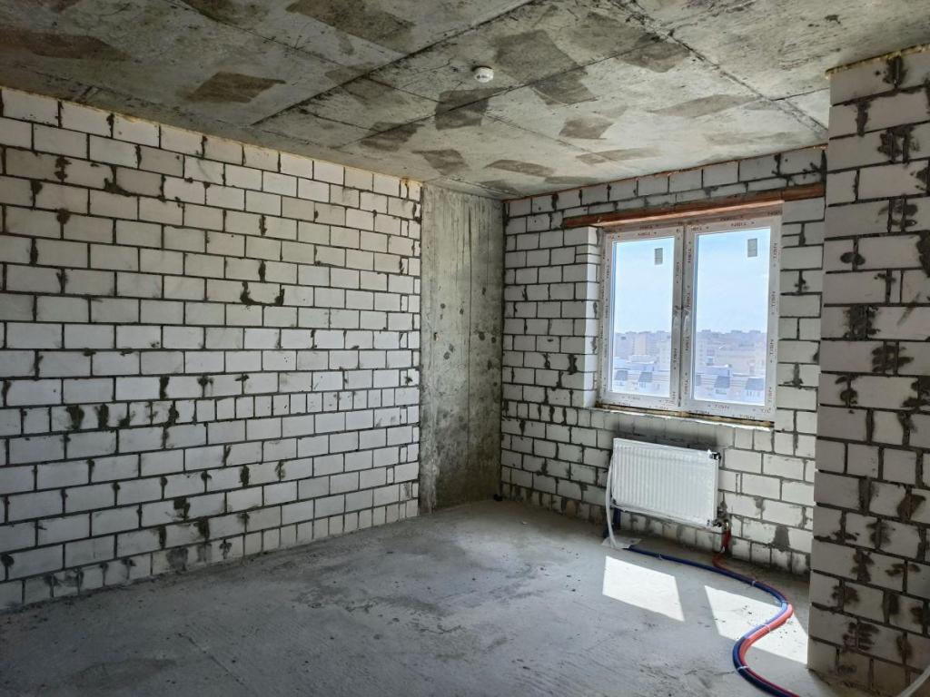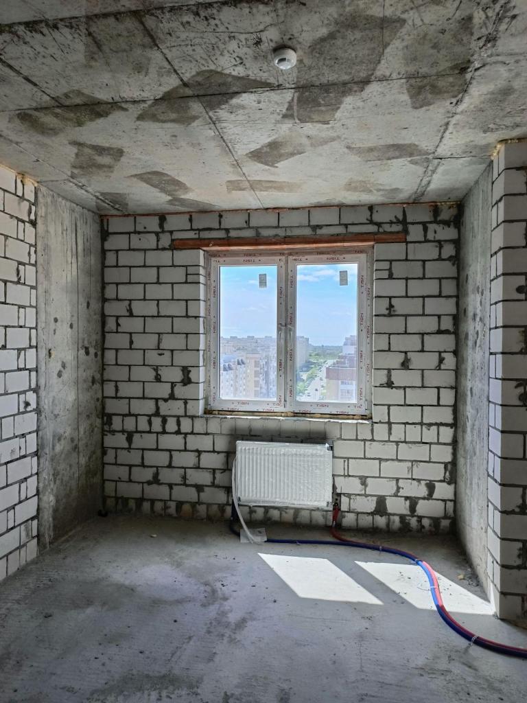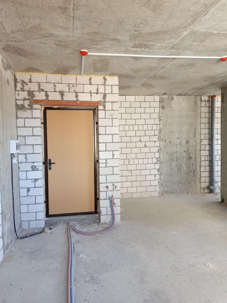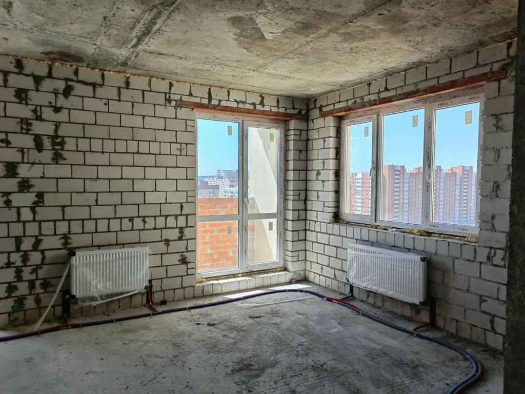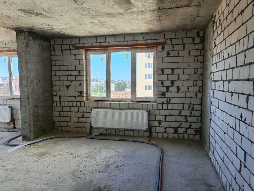 Квартира без внутренней отделки, с установкой металлической двери, пластиковых окон, радиаторов отопления, приборов учета.