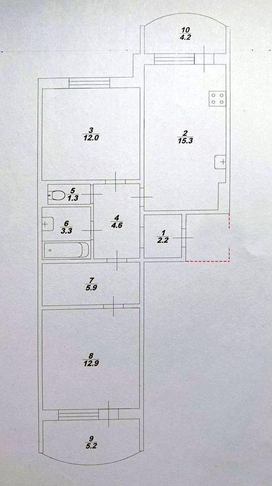 Простор: Целых 57.5 м, изолированные комнаты и кухня 15.3 м здесь легко дышится!