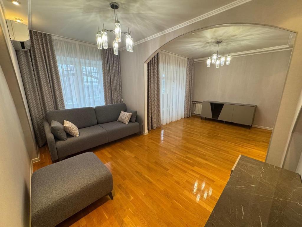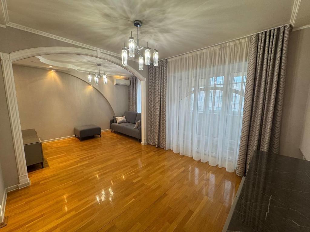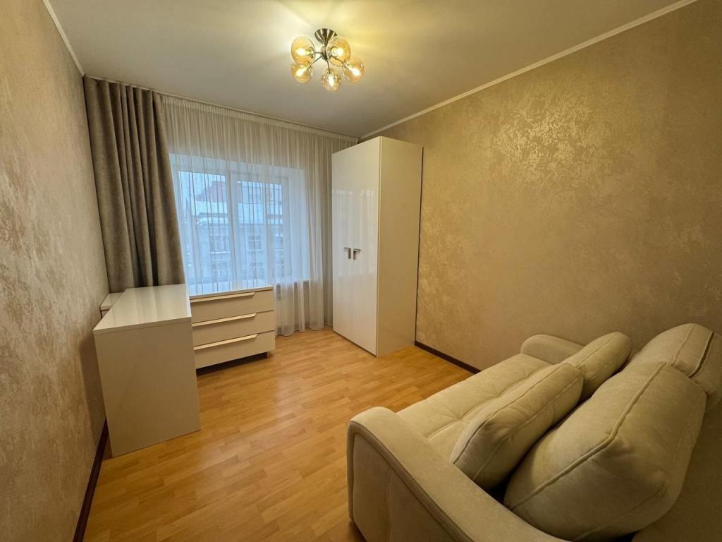 Главная зона (для семьи): Просторная 3-комнатная квартира. Эксклюзив начинается с двери: Вы — единственный хозяин этажа. Никаких соседей за стеной. Система хранения мечты: Вместо прихожей — роскошная гардеробная. Большая светлая гостиная с выходом на лоджию — место для вечеров в кругу семьи. Две изолированные спальни — гарантия личного пространства. Просторная кухня с новым гарнитуром и техникой премиум- класса, площадью 15,4 кв.м. Совмещенный санузел с качественной отделкой.
